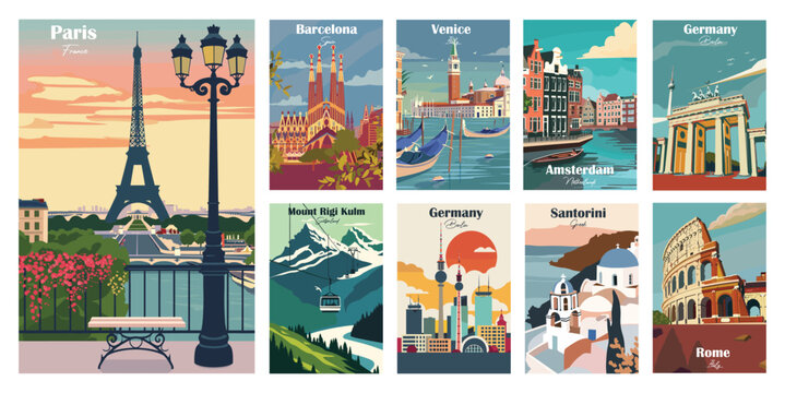 Set of 9 Vintage National Park Posters, National Park Art Prints Nature Wall Art and Mountain Print Set Abstract Travel for Hikers Campers Living Room Decor.