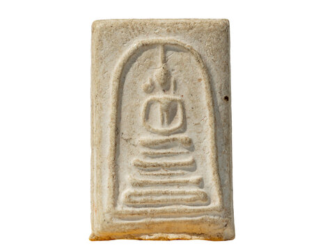 Amulets, Macro Thai buddha amulet isolated on white background.