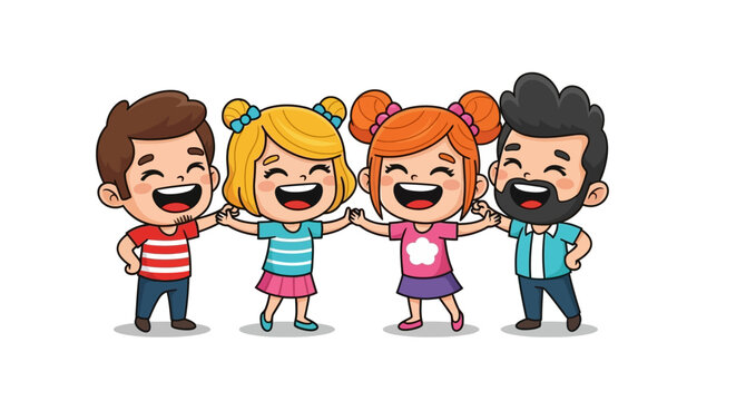 Adorable cartoon characters in playful formation with various expressions, cut out - stock png.