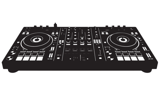 Black and white illustration of a DJ console