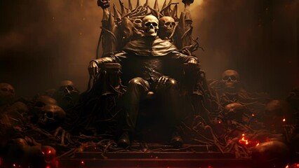 An undead being sits on an eerie throne of bones staring blankly towards an obscured destination.