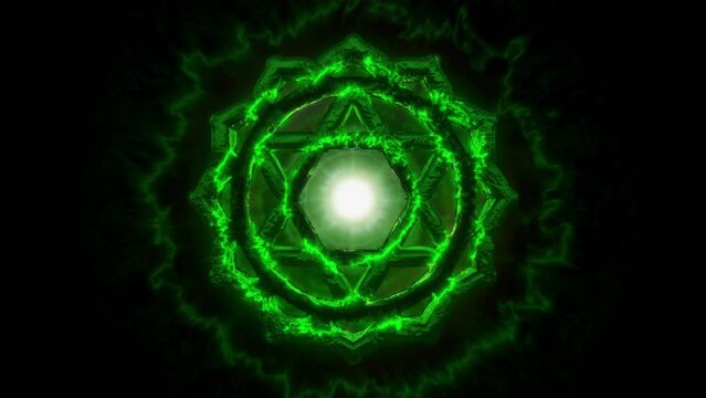 Anahata - Heart Chakra: At the center of our being, Anahata emanates emerald green energy, nurturing love, compassion, and harmonious connections with others. Seamless loop. Tunnel of light. VJ Loop