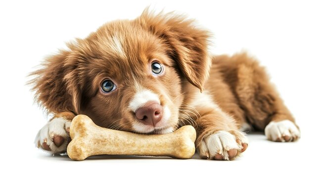 Anak Anjing Lucu dengan Tulang Terisolasi di Latar Belakang Putih. Makanan Amerika