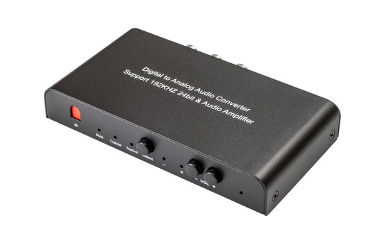 Digital-analog converter on a white background. A device for switching and converting an audio signal.