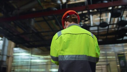Supervisor woman analysing work at modern manufacturing production warehouse.