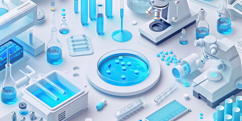 Magnifying glass on colourful pie chart with "Research" text on paper, dice, spectacles, pen, laptop calculator on wooden table - business, banking, finance and investment concept