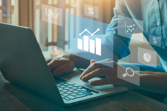 Business analytics concept, financial charts and graphs, business intelligence, profit statistics and finance performance of company.