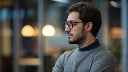 Focused businessman working on dual monitors in a modern office