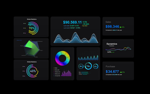 Chart graph elements for data analytics and statistics. UI, UX, KIT elements. Modern infographic with template and chart statistics. Dashboard Infographics presentation.UI dashboard concept.