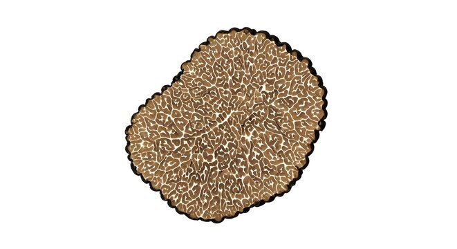 Slice of black truffle, a luxury superfood with Anandamide for 'bliss molecule' support and ECS homeostasis, isolated on a white background.