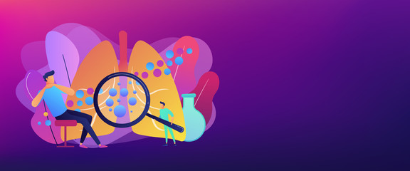 Male patient with anaphylactic symptoms and doctor with magnifier. Anaphylaxis, anaphylaxis shock treatment, allergic reaction help concept. Header or footer banner template with copy space.
