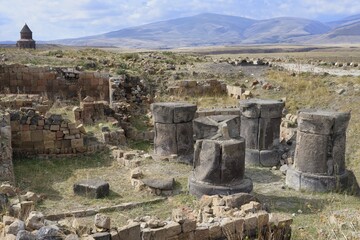 Columns of the Zoroastrian Fire temple, Ani Archaeological site, Kars, Turkey
