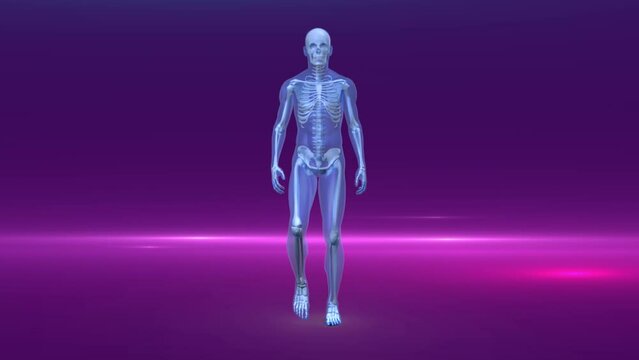 Video of coloured lights over human anatomic model on purple background