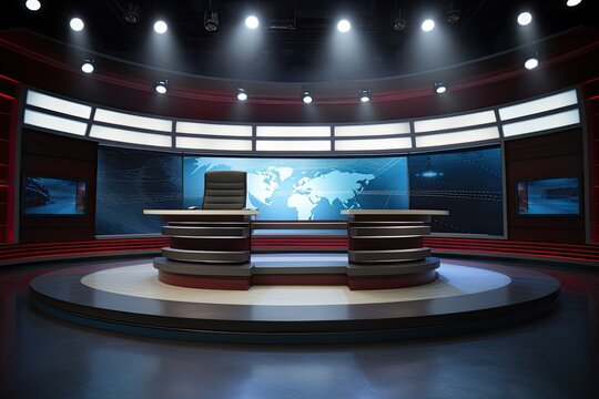 Virtual tv studio set awaiting news anchor presenting breaking news