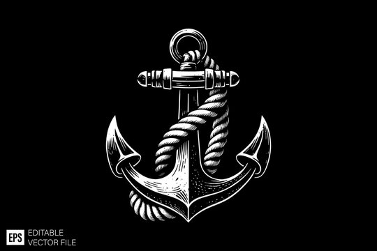 Vintage anchor illustration vector design monochrome style