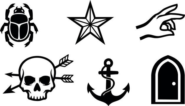 Vector illustration of a black sword and arrow silhouette symbol design