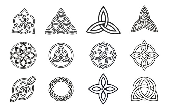 Set of Celtic outline knots ornament, Medieval viking tattoo shape vector, infinite weaving pattern, Collection of various form, stickers assets, abstract geometric graphic elements for design