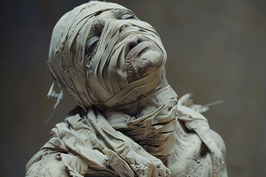 Scary sinister mummy wandering in street with dramatic lighting on celebration holiday Halloween