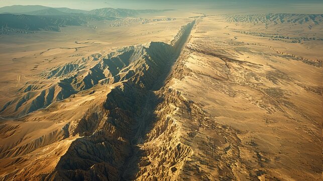 An aerial view of the San Andreas Fault, illustrating tectonic plate interaction,