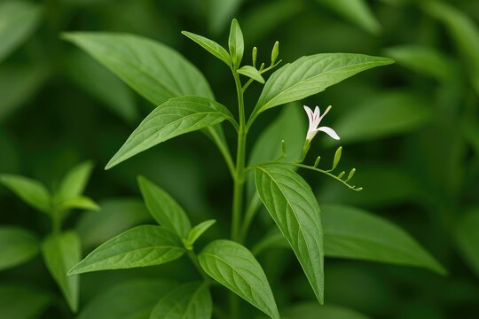 Closeup of Green chiretta (Andrographis paniculata) plant, popularly known as Kalmegh in Bengali language and is being used as medicinal plant from age old days in Indian Subcontinent.