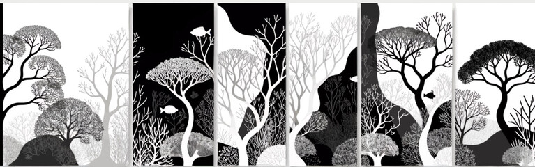 a flat panel arrange_trees and the bushes are varied_The light ands dark creates interesting contrast