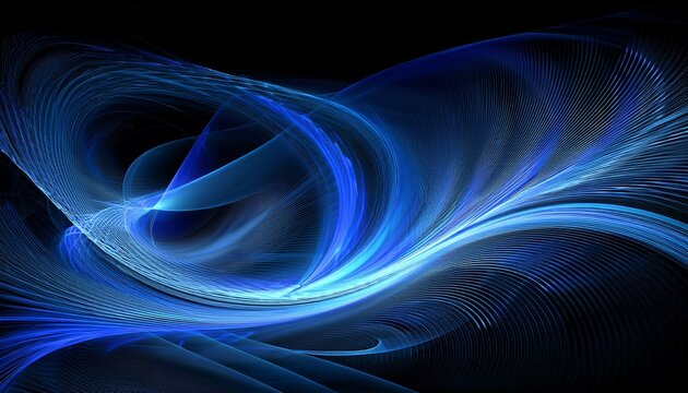 abstract blue on black background texture dynamic curves ands blurs pattern detailed fractal graphics science and technology concept