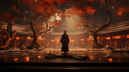 China young female shaolin asia monk in monastery. Spiritual development tranquility, yin yang balance, ascetic, Buddhist monastery, novices Shaolin Temple.
