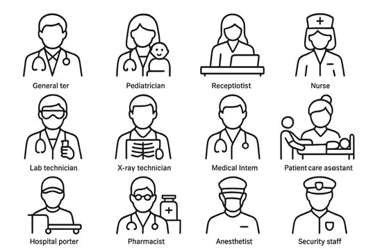 Medical staff illustrations: roles and uniforms in healthcare setting