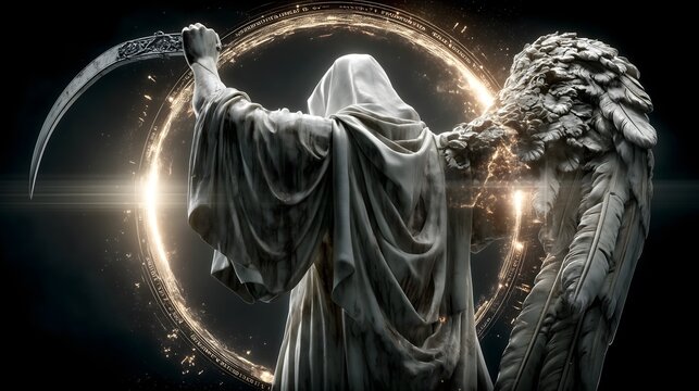 silhouette of the angel of death the grim reaper carrying a