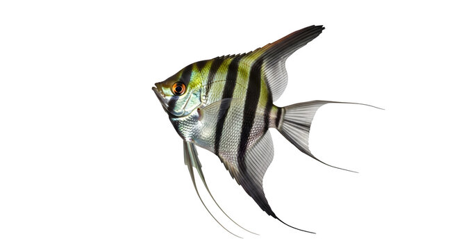 zebra angelfish pterophyllum scalare aquarium fish isolated on white