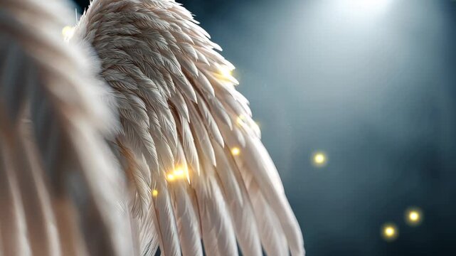 Archangel. Heavenly angelic spirit with wings. Illustration abstract white angel. Belief. Afterlife. Spiritual Angel. Blessing. Sky clouds with bright light rays. Heaven. Faith. Web banner