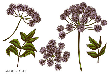 Angelica Botanical Illustration, Archangelica Medicinal Plant, Angelica Flowers Botanical Drawing