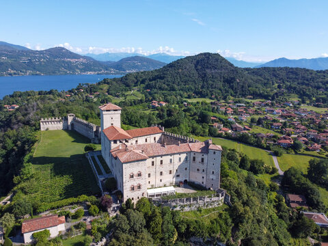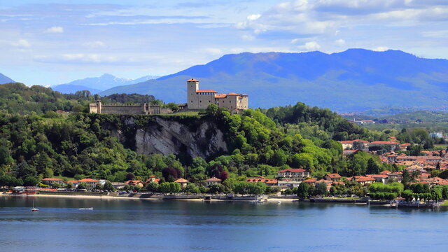 View of the Rocca di Angera, a popular tourist destination on the Lake Maggiore area, Lombardy, Italy