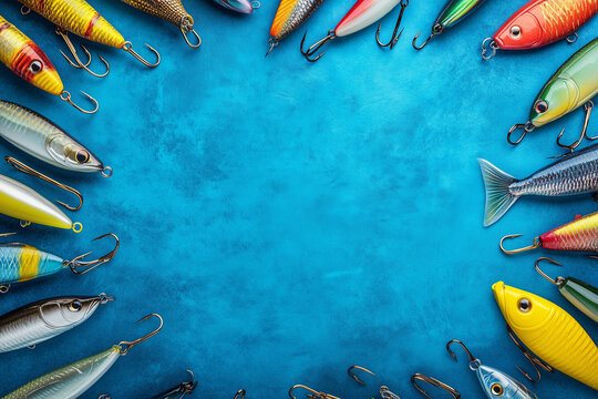 Close-up of a tackle box adorned with an array of lures, each designed to entice and captivate different fish species. The assortment showcases the angler's strategic. Generated by AI.