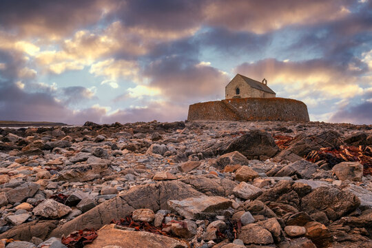 Sunset view of Lighthouse on Llanddwyn Island at the coast of Anglesey in North Wales,UK
