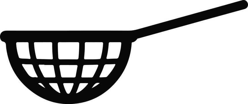 Silhouette Fishing Net Scoop Tool Equipment Outline Isolated White Background Vector Illustration