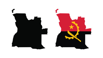 Angola country silhouette. Set of 3 high detailed maps. Solid black silhouette, thick black outline and thin black outline. Vector illustration isolated on white background.