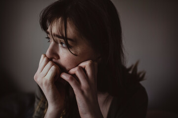 Close-up of worried woman looking away