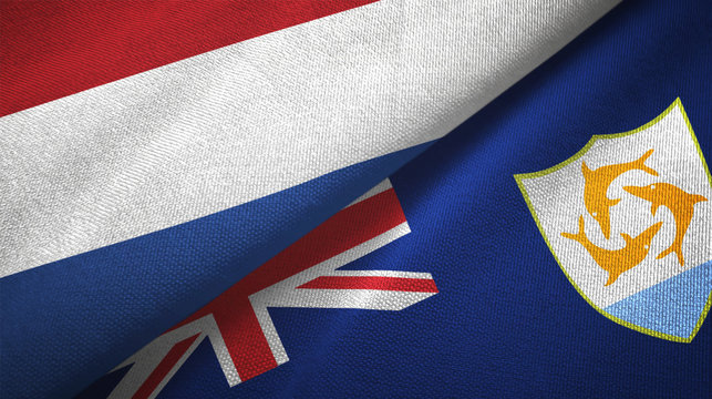 Netherlands and Anguilla two flags textile cloth, fabric texture