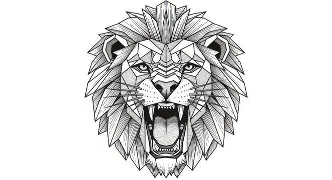 Majestic Lion Head Illustration with Geometric Patterns and Sharp Lines