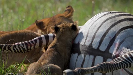 Lion and lioness lying in the grassland, illustrating natural animal behavior