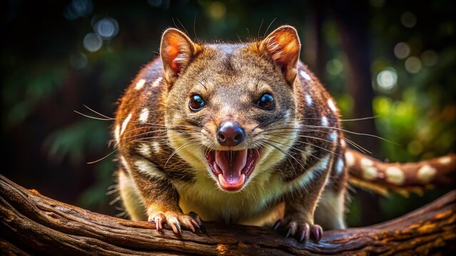 Aggressive Spotted Quoll Wildlife Stock Photo - Australian Marsupial