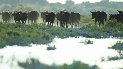 France Camargue bull animal black horse water marshland