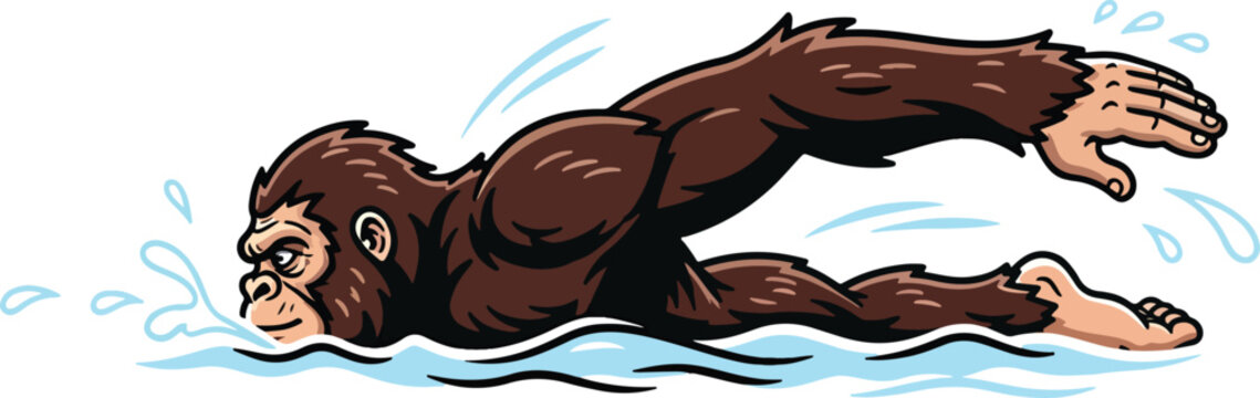 Gorilla Swimming Illustration Powerful Animal Fitness Artwork