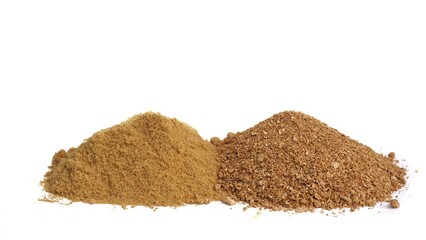 pile of ground full fat soy and soy bean meal high protein source of swine livestock