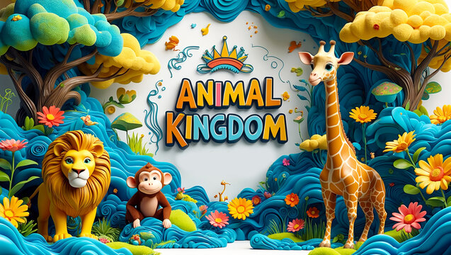 Animal Kingdom 3d Editable Text Effect Cartoon Style Premium Vector