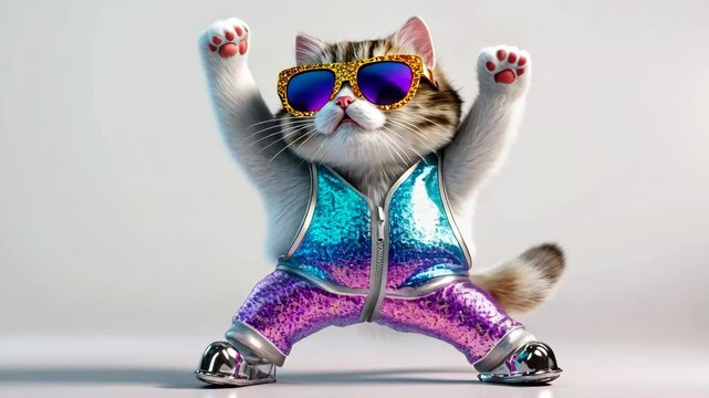 Funny Cat Yoga Pose with Sunglasses and Colorful Outfit