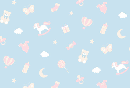 seamless pattern with a set of baby items for banners, cards, flyers, social media wallpapers, etc.