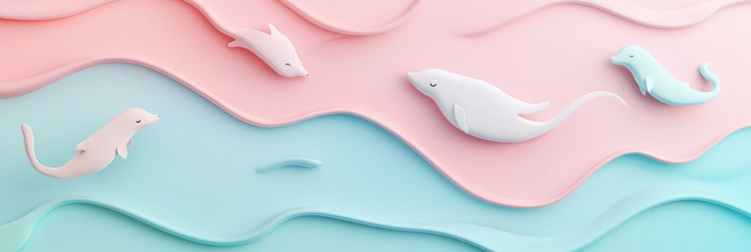 3d background minimalistic mockup with space for text, soft pastel background with floating animal silhouettes