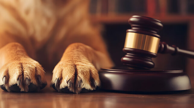 Dog paw print on a table, with space for text. The concept of legal action in pet services or animal protection and emotional pet care. Animal rights concept.